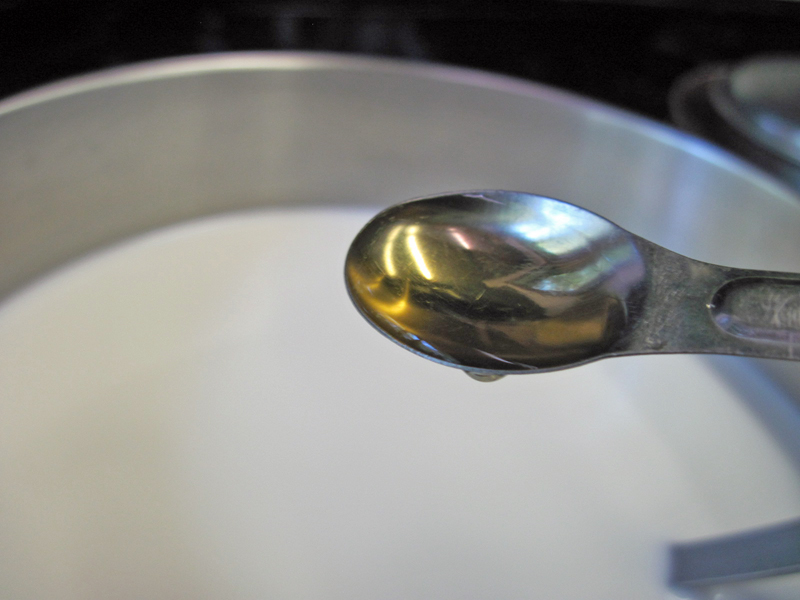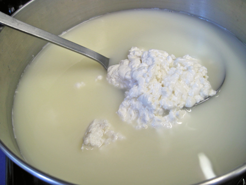 After the milk has set turn the heat back on to low and heat again for about 2 minutes. Using a slotted spoon pull the curds to the side of the pot. Keep moving the curds for about 10 minutes with the slotted spoon. (This breaks up the curd and keeps them draining.)