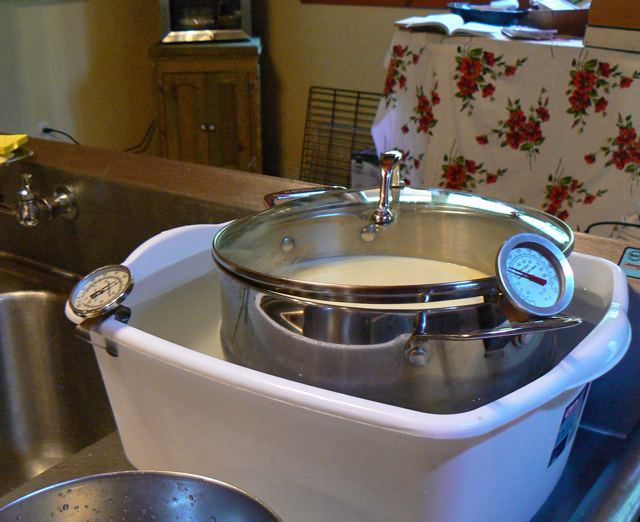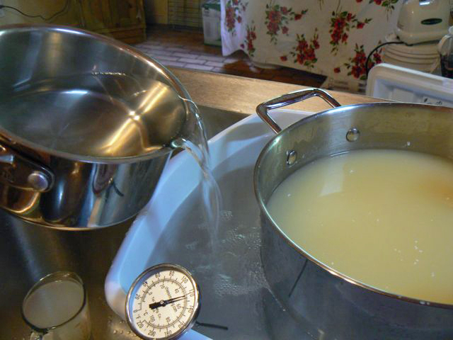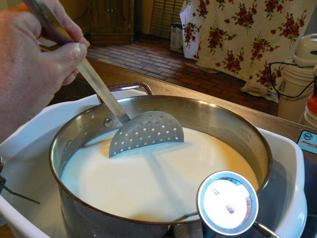 I now keep a third (digital) thermometer around to test my cheese making thermometers before starting. I highly recommend this for new cheese makers. You get so “into” what you are doing that you overlook the simple stuff.