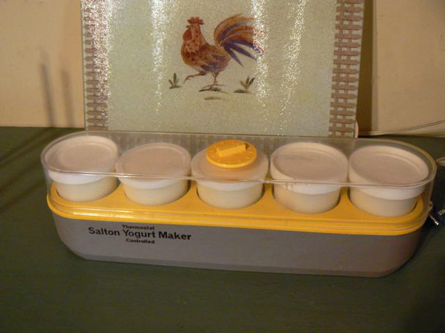 | Making sour cream in her 1910 (exaggeration) yogurt maker |