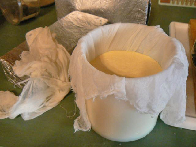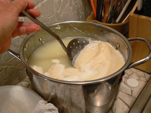 Pour off the whey (I prefer to scoop it out) and place the curds in a cloth lined mold