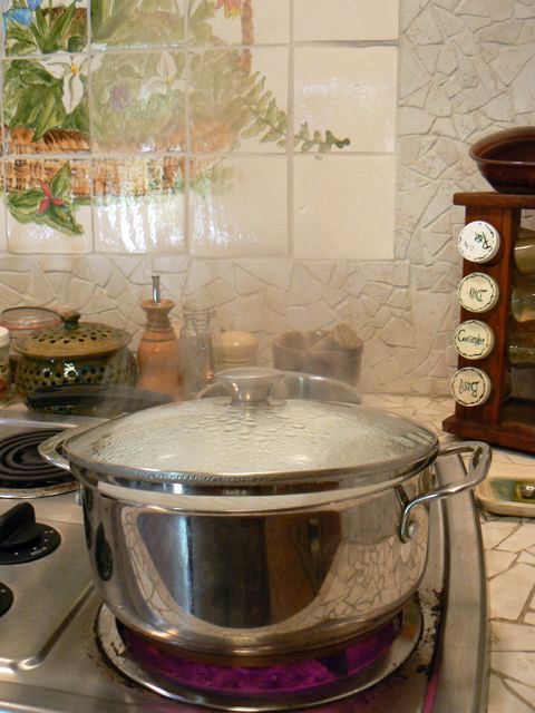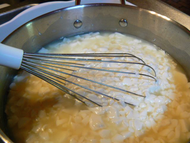 | Terrie scoops it out of the pot, then transfers it to the mold (easier than tipping large pot) |