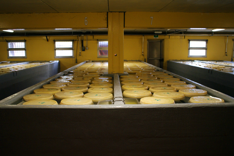 Once the wheels have dried for several days, they are moved to the brining tanks, where they float in salt-saturated water for more than 3 weeks. After that they are brought to the aging room, where they hang out for a minimum of one year, losing about 5kg (11 lbs) of mass in the process.