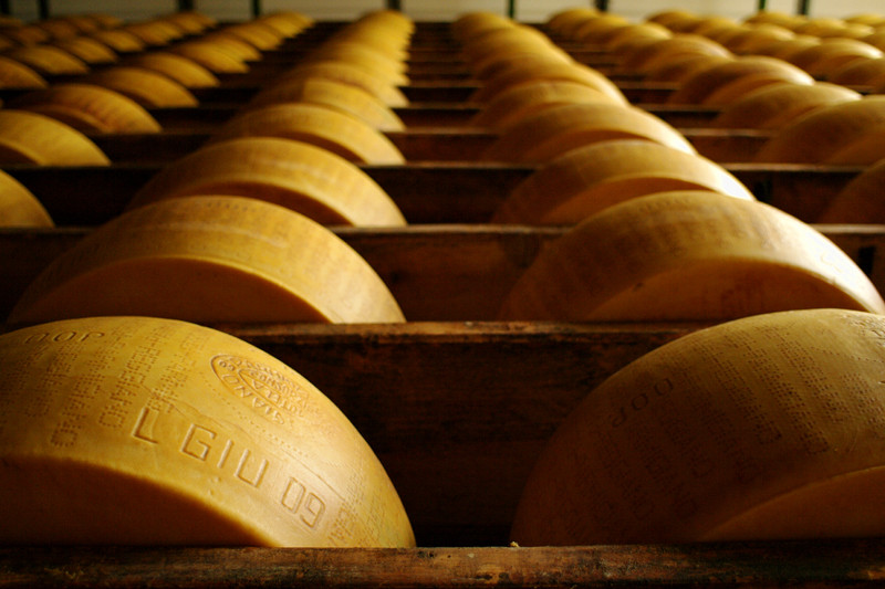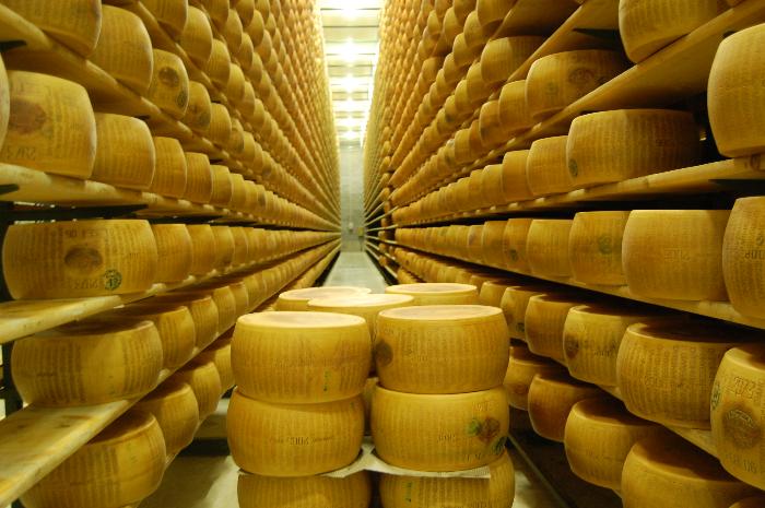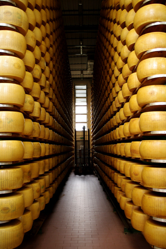 Parmesan-Reggiano and 100,000 wheels of Grana Padano in them. (Each