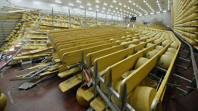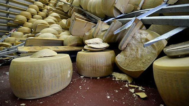 During the earthquake and the aftershocks, thousands of wheels of cheese fell from their shelves in the warehouses of the area with millions of dollars worth of damages. It is estimated that 10% of Parmesan production and at least 2% of Grana Padano production has been impacted.