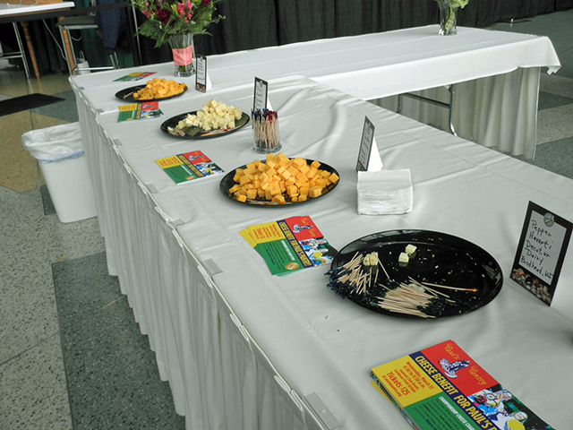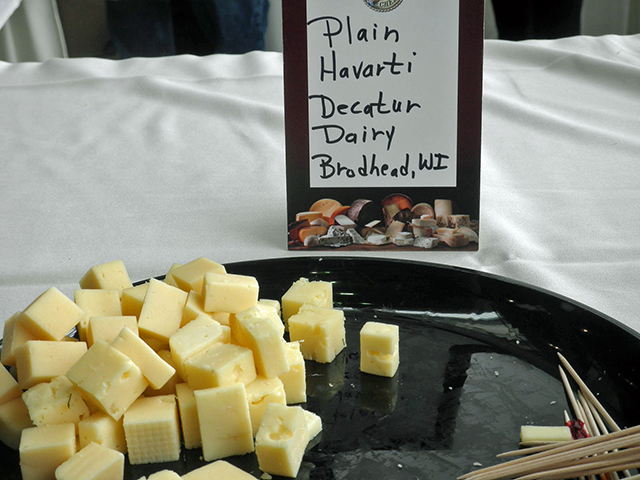 There is a table set up for tasting. There were 4 types of cheese available: sharp cheddar, yellow cheddar, Havarti, and pepper Havarti. I read on the contest website that these are all supposed to be winners from the last competition. I was not too crazy about any of them. They were all from Wisconsin.