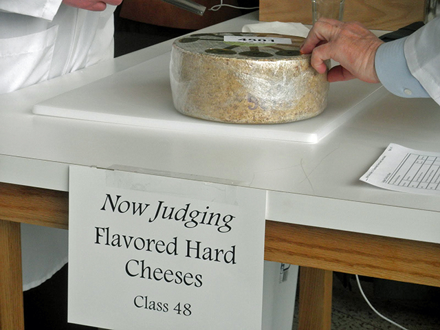 As I understand it, they start out with a perfect score of 100 and deduct points from there. Each class assigns a 1st, 2nd and 3rd prize. The first prize winners in all categories, except processed cheese compete tonite for the Grand Prize. I think the big winner is only awarded $500, but the marketing advantage is huge.