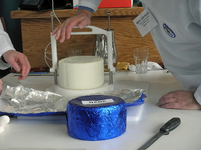 Once they have the cheese cut or a piece in their hand, the judges smell the cheese. Then they taste it for saltiness, bitterness, and texture.
